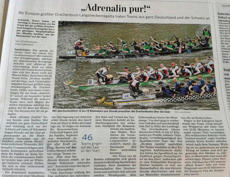 Der Monkey-Jumble in Saarbrücken ist immer ein ganz besonderes Erlebnis im Drachenbootsport.